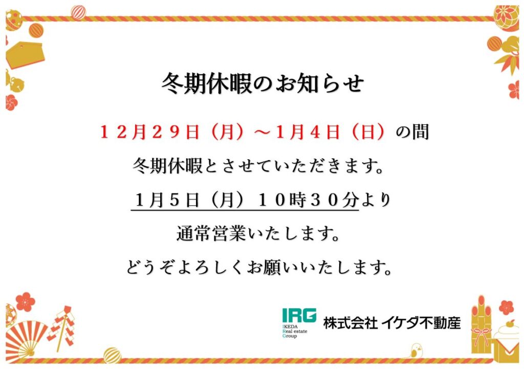 冬期休暇のお知らせ